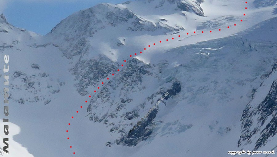 Verlauf: Wanderweg in Richtung Cordonne, durch das Valsorrey, am Chalet d en Bas und Chalet d Amont zu der Cabane du Velan. Von der Hütte am Glasier du Tseudet zu Col de la Gouille, Kletterpasage II, Ketten vorhanden, falls nicht unterm Schneee. Hier weiter auf dem Glasier du Valsorey an der Seracwänden im großen Linkssbogen zum Gipfel.