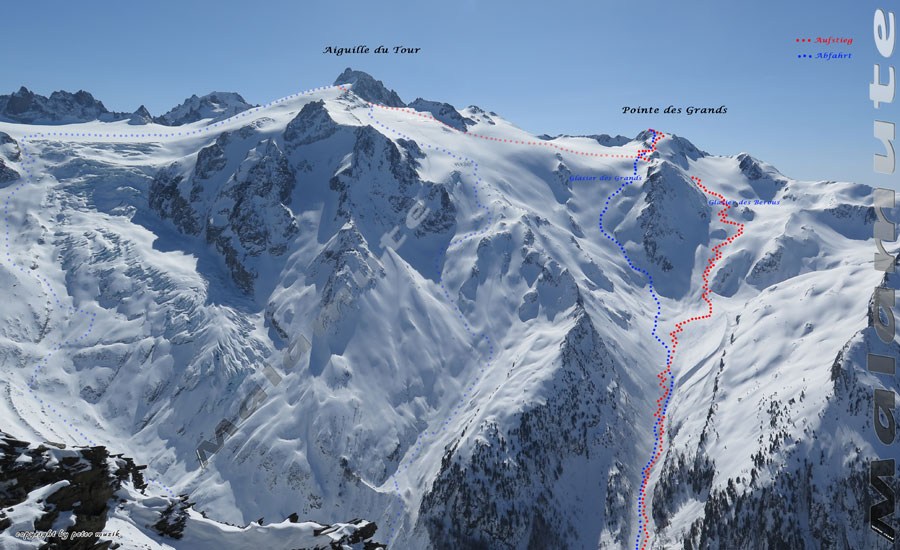 Abfahrt: über Glasier des Grands, Stellenweise bis zu 30°